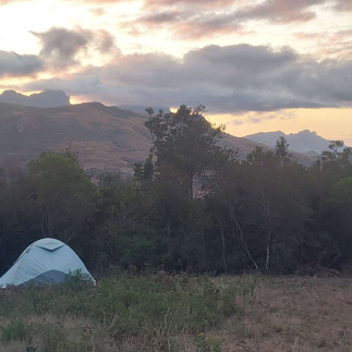 After a couple of hours in the rice paddy fields we began to ascend more steeply through a woodland trail where red bellied lemurs bounced through the trees, almost guiding us to the campsite. On arrival to the campsite, the porters had already set up our tents and a jug of fresh passion fruit juice and a plate of freshly roasted peanuts and dried plantain awaited us. The toilet was simply a hole in some wooden planks in a hut with a straw roof, with a beautiful view across the terraced land. Before dinner Jenoux led us into the forest with our headtorches on in search for nocturnal wildlife. He excitedly pointed out chameleons and a poisonous plant, translating the Malagasy name to “mother in law plant” as he cheekily giggled. Dinner was lovely, fresh vegetables from the morning market served with noodles followed by pineapple soaked in rum and vanilla. I climbed into the tent after a fun first section of the mountain and was looking forward to what lay ahead.